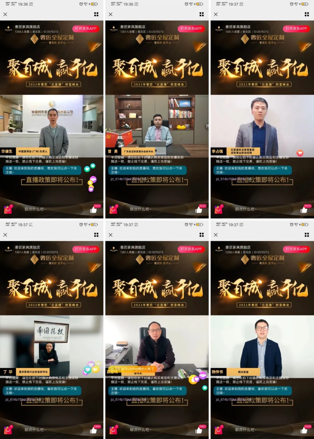財(cái)富峰會第二環(huán)節(jié),眾多家居行業(yè)大咖現(xiàn)身奢匠直播間,為奢匠“云直播”財(cái)富峰會帶來祝福。