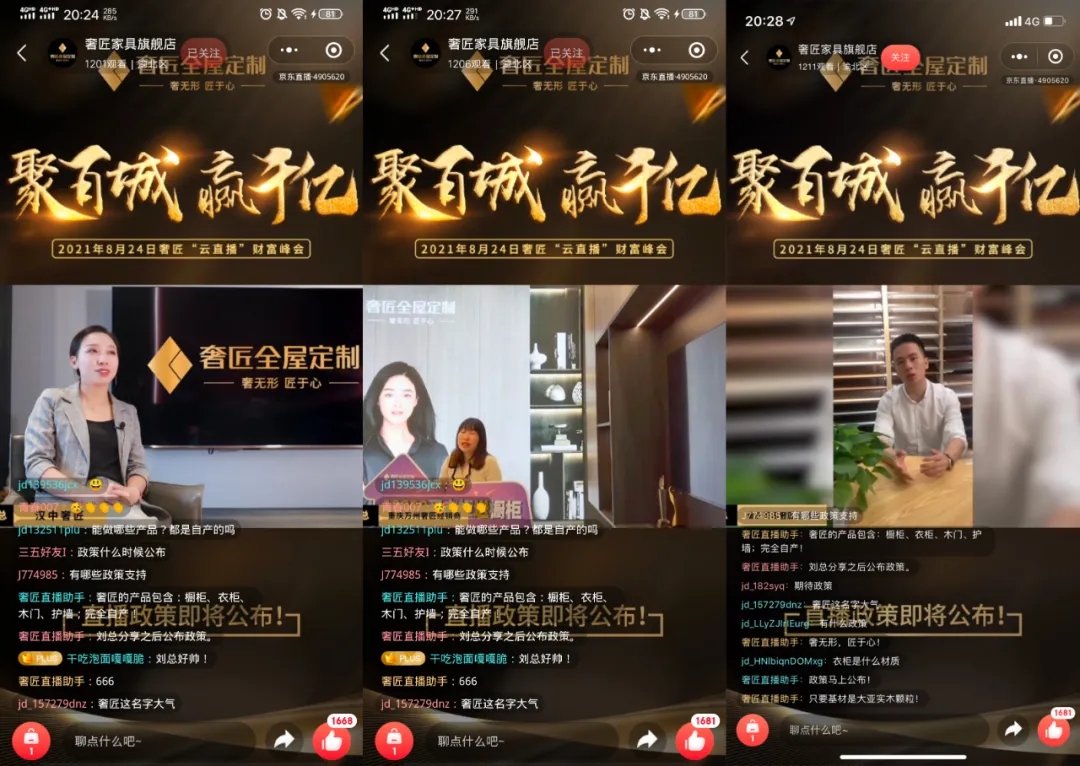 下一個(gè)環(huán)節(jié),奢匠家居營(yíng)銷副總劉孝全先生作本次峰會(huì)主題分享,劉總在直播間分析了家居行業(yè)現(xiàn)狀及家居消費(fèi)群體的特點(diǎn),解讀了奢匠的戰(zhàn)略規(guī)劃、營(yíng)銷策略、核心競(jìng)爭(zhēng)優(yōu)勢(shì),并詳細(xì)分析了奢匠的用戶畫(huà)像,以及今后奢匠將如何攜手經(jīng)銷商快速占據(jù)消費(fèi)市場(chǎng)。
