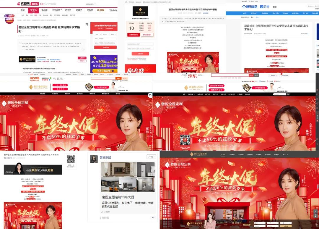 為了擴(kuò)大活動影響力,覆蓋更多的消費群,幫助經(jīng)銷商終端獲客。此次活動集結(jié)了奢匠家居官方微信公眾號、京東、淘寶、抖音、小紅書、視頻號等自媒體平臺全線引流宣傳,聯(lián)合騰訊家居、慧亞家居等合作媒體同步造勢,提升品牌聲量,一展品牌勢力。