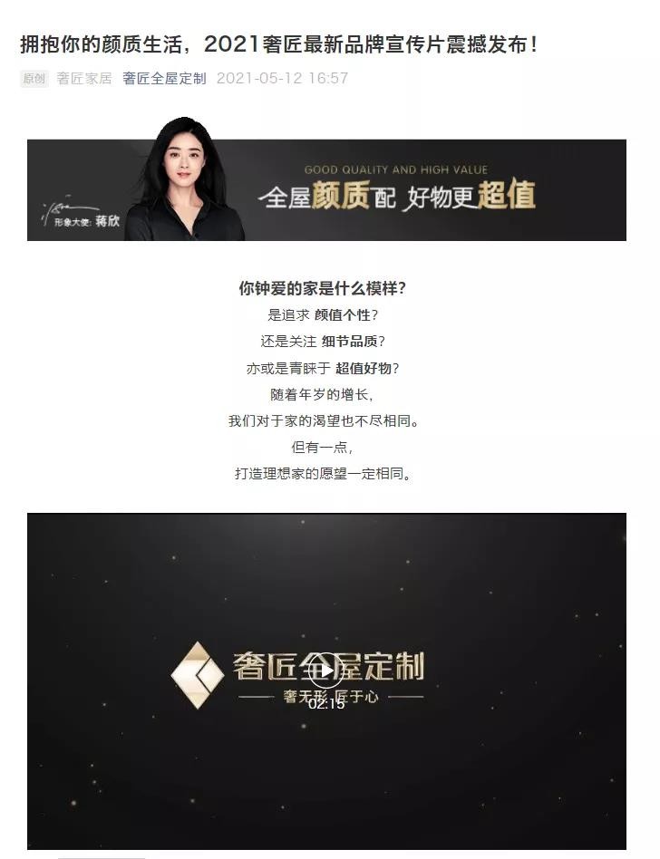 2021年奢匠全新宣傳片上線,全新展示奢匠“全屋顏質(zhì)配 好物更超值”的品牌新主張,同時根據(jù)市場趨勢,升級8大空間產(chǎn)品系列圖,形成了以極簡輕奢、流行現(xiàn)代、儒雅中式、經(jīng)典歐美4大風(fēng)格產(chǎn)品矩陣,為消費者提供高品質(zhì)、多元化、健康環(huán)保的家居生活體驗。