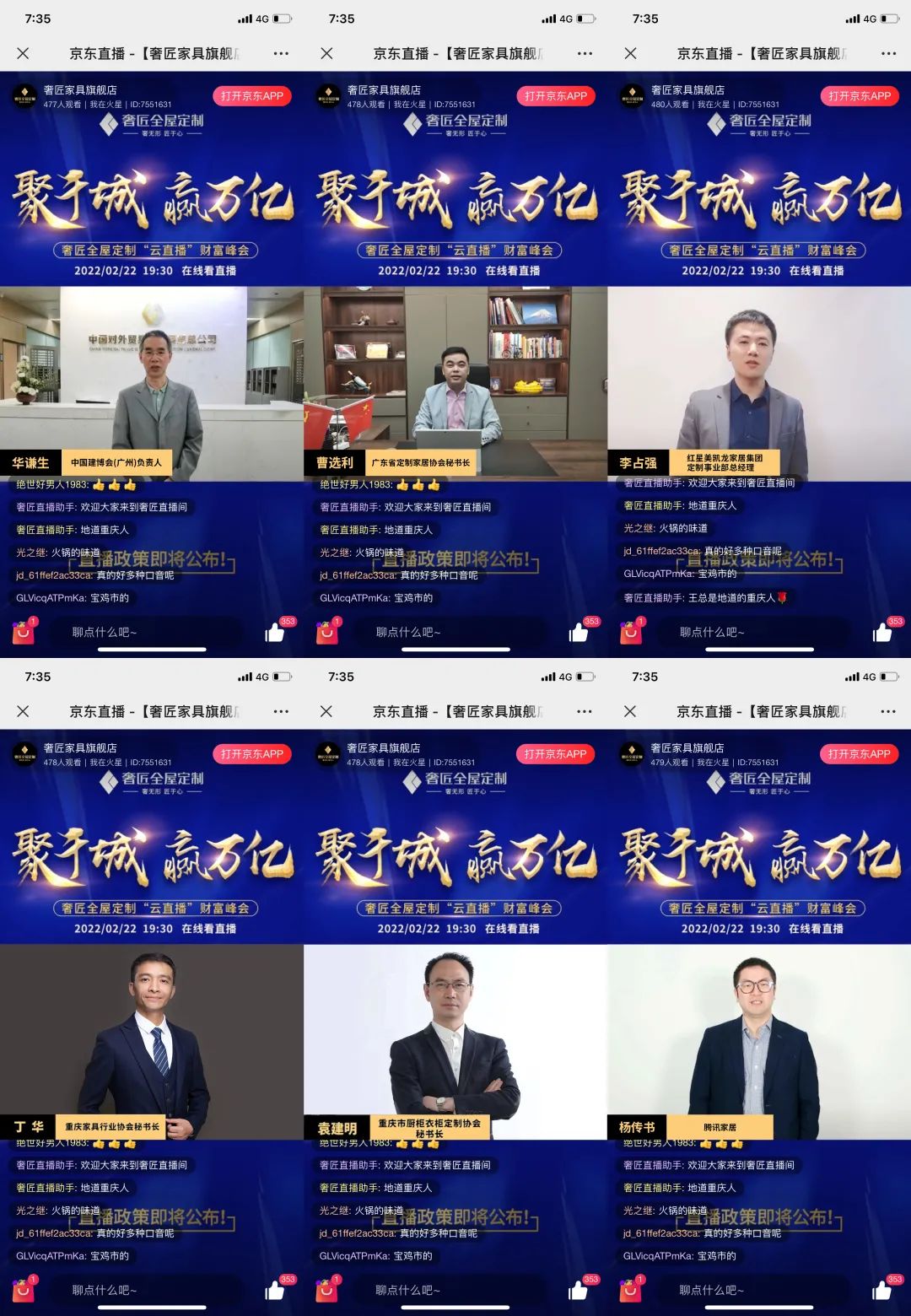 奢匠自成立以來,憑借強勁品牌實力和完善產(chǎn)品體系,贏得了行業(yè)各界的認(rèn)可與支持。本次云直播財富峰會,行業(yè)大咖們也紛紛來到直播間進行打CALL,預(yù)祝本次財富峰會圓滿舉行。