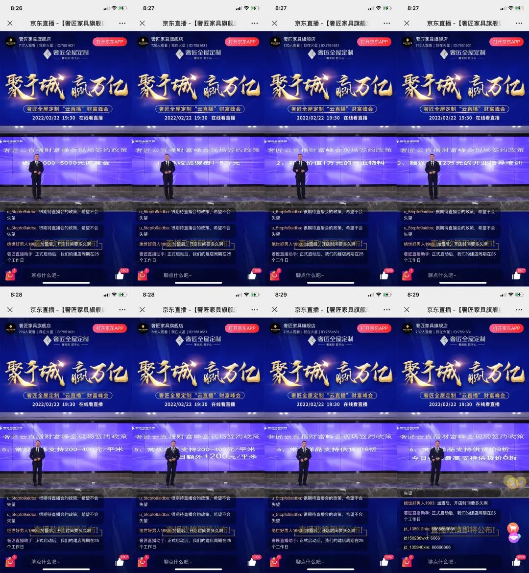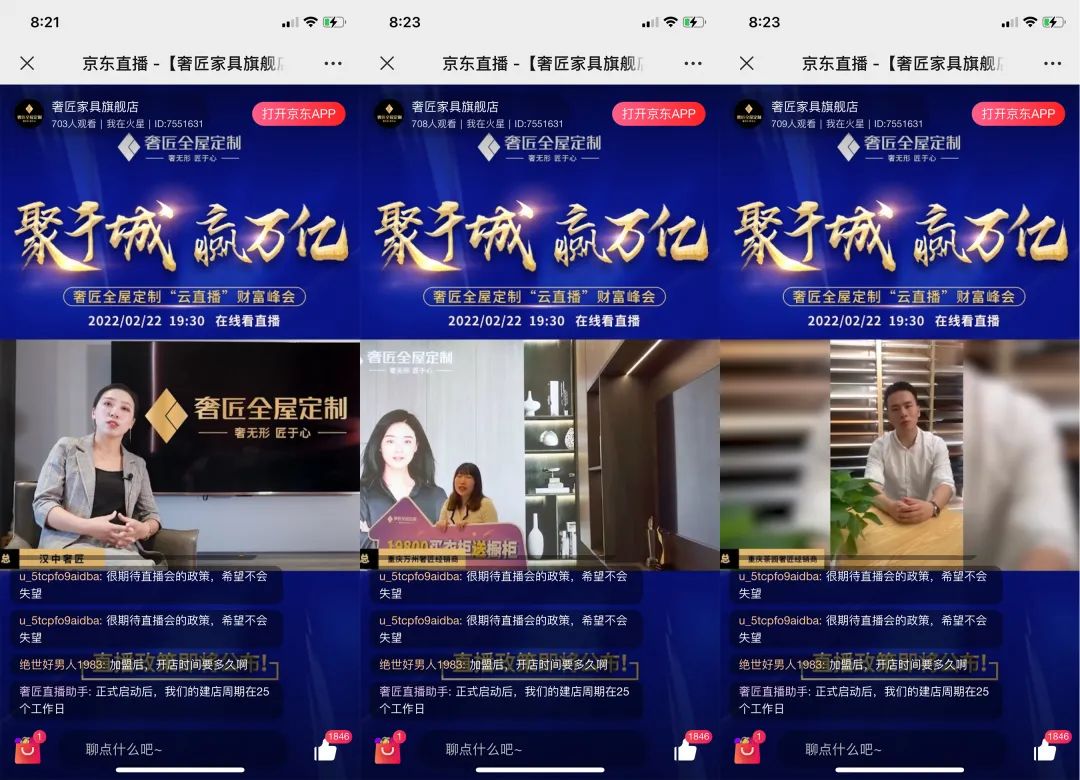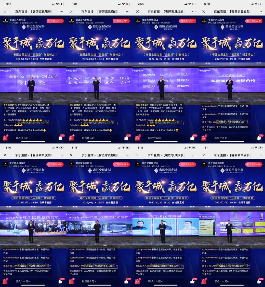 2022年2月22日,奢匠全屋定制“聚千城 贏萬億”云直播財富峰會圓滿結(jié)束。直播當(dāng)天,觀看人數(shù)達千余人次, 直播封面點擊率達90%,簽約加盟17組,成績斐然!