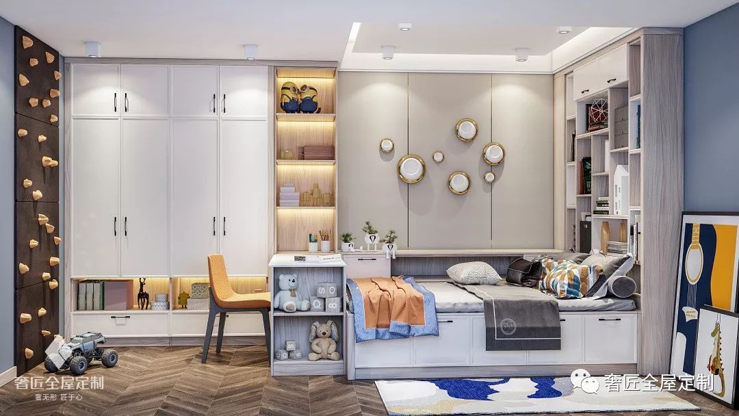 多功能空間從色彩上構(gòu)筑了縱深的層次感。采用鮮明亮眼的橙色作為點(diǎn)綴,與白色書柜相呼應(yīng),使空間整體既沉穩(wěn)深厚,又靈動(dòng)舒適,看起來更加簡約時(shí)尚。榻榻米與書柜的整體定制,無縫鏈接每一寸可利用空間,同時(shí)滿足辦公、儲物、臨時(shí)客房的多種需求,讓整個(gè)空間更加統(tǒng)一協(xié)調(diào),極具實(shí)用性。