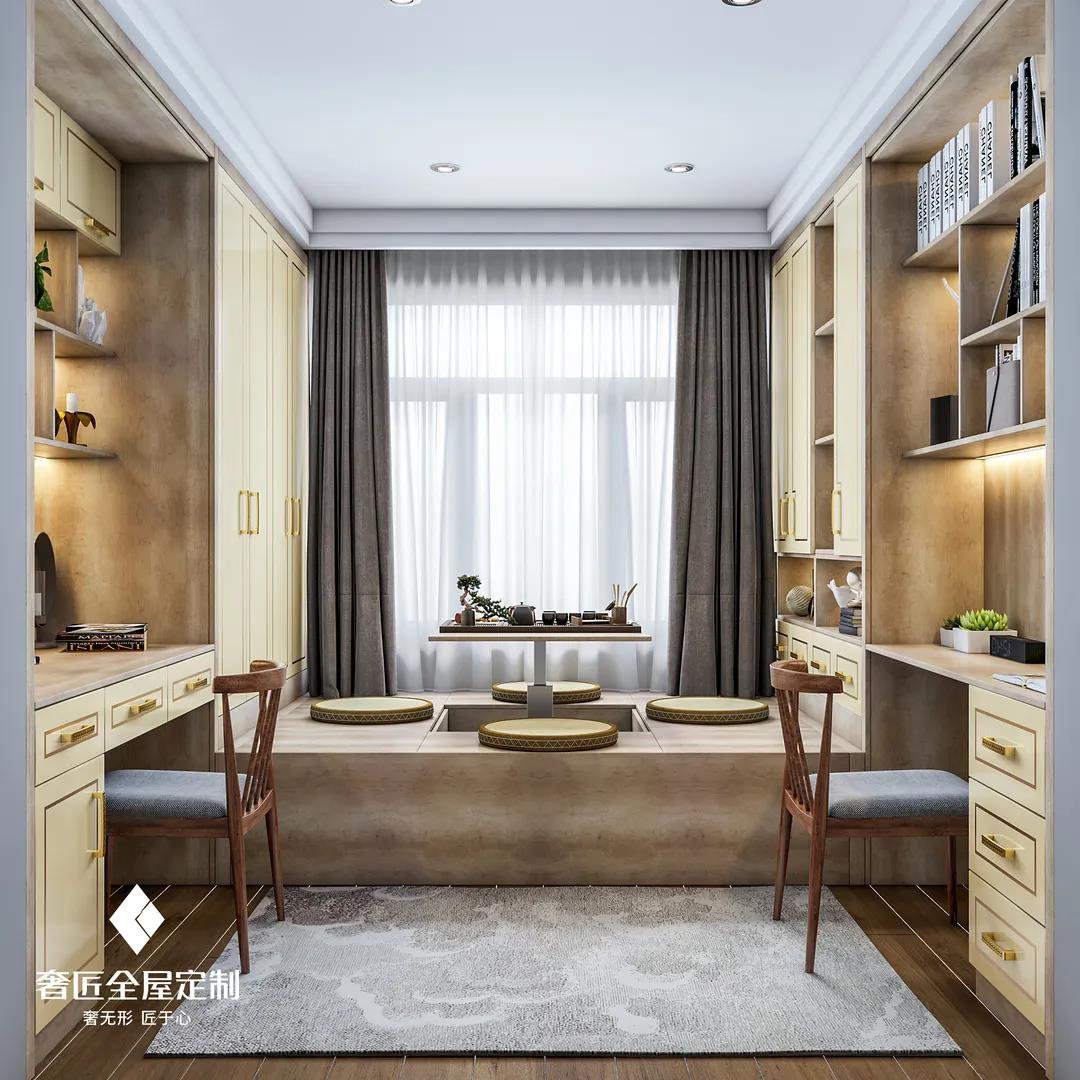 茶香墨韻,書里芳華。中國人對(duì)于書的熱愛,是刻在骨子里的,書房中的一桌一椅都彰顯出主人的品位。亂花迷人眼,唯大道至簡,簡約硬朗的直線條與清雅的色調(diào)勾勒出一個(gè)可靜心潛讀或清修飲茶的空間。