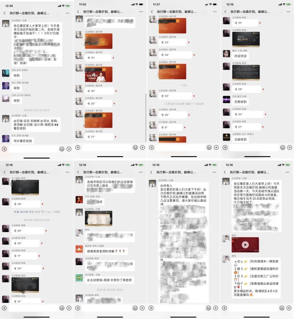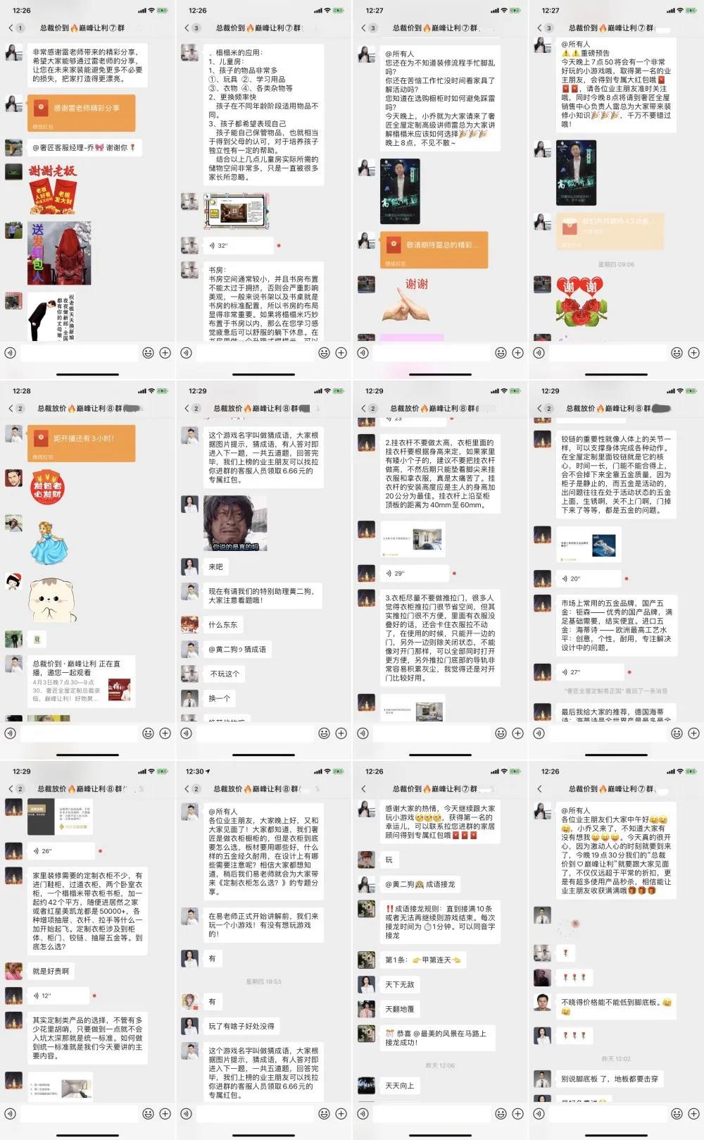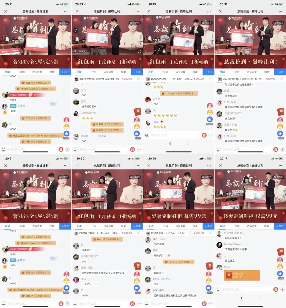 本次直播利用微信社群,提前預熱。預熱期間,奢匠邀請家裝行業(yè)專家于每晚8點為客戶講解裝修知識、解答裝修問題,奢匠客服人員預熱期間持續(xù)與群內(nèi)客戶互動,不定時送上紅包福利,獲得群內(nèi)客戶一致好評,使終端消費者對奢匠更有信心。
