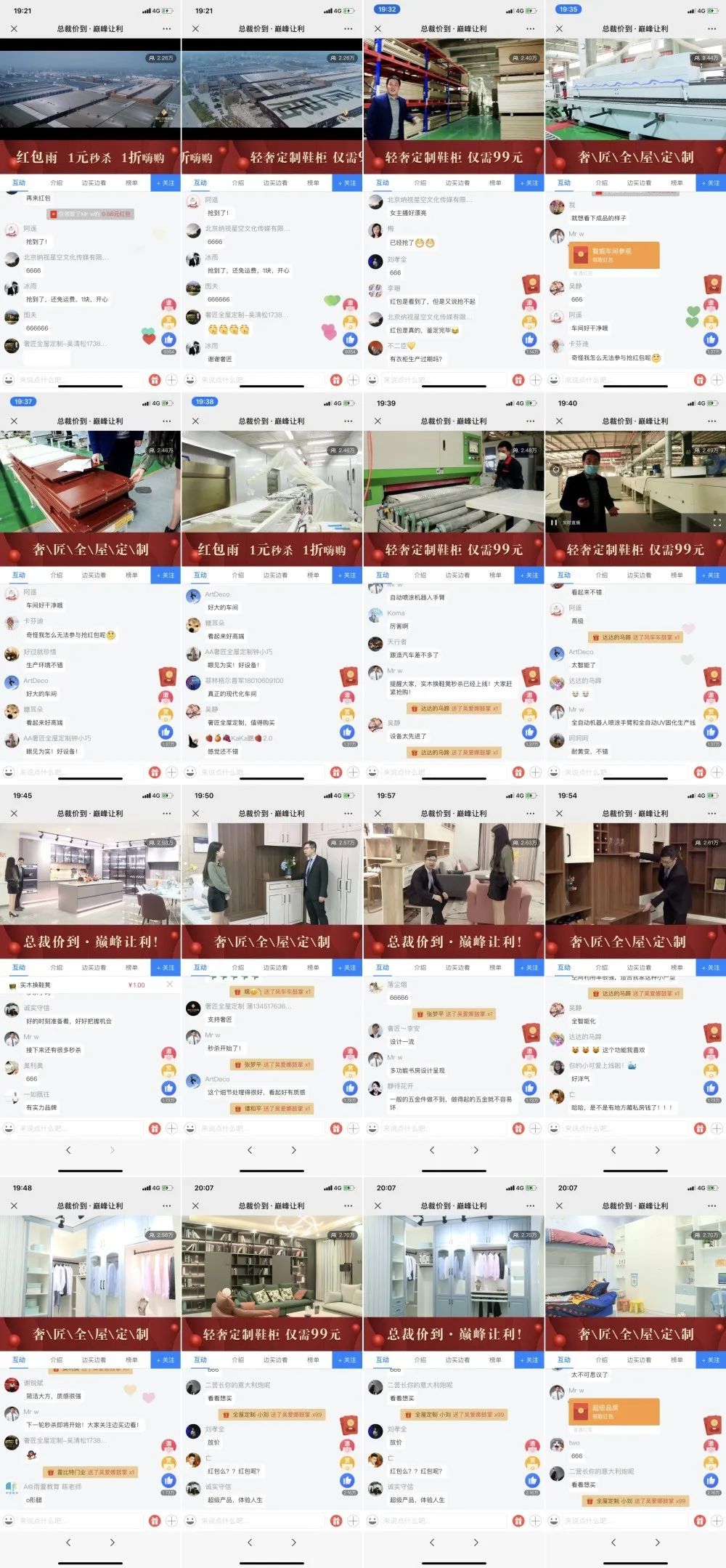 直播期間,奢匠帶領客戶朋友們線上參觀工廠和展廳,讓消費者跟隨鏡頭身臨其境的感受工廠的生產(chǎn)規(guī)模、產(chǎn)品工藝,了解產(chǎn)品細節(jié)、產(chǎn)品風格等。主播從環(huán)保、產(chǎn)品設計、功能性、耐用性等各方面專業(yè)、全面講解,使終端消費者更加了解奢匠產(chǎn)品。主播還為大家分享居家環(huán)保知識、板材知識等,引來直播間的頻頻互動,瘋狂點贊。