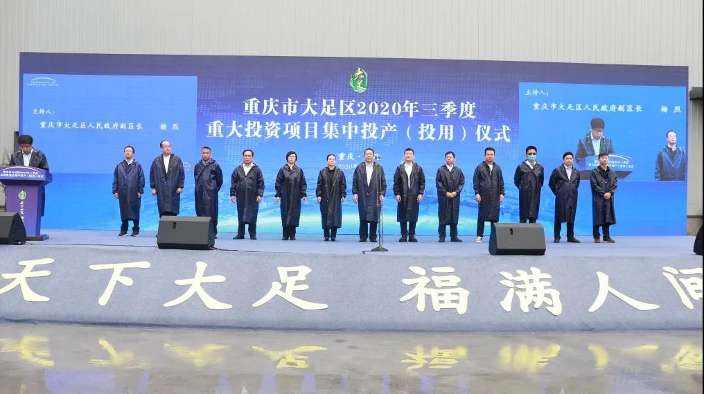 2020年9月25日,重慶市大足區(qū)2020年三季度重大投資項目集中投產(chǎn)(投用)儀式于大足龍水工業(yè)園區(qū)舉行。大足區(qū)常務(wù)副區(qū)長蘇一元 、副區(qū)長楊烈、區(qū)人大副主任駱華、區(qū)政協(xié)副主席張秀榮等各級領(lǐng)導(dǎo)均出席了本次儀式。
