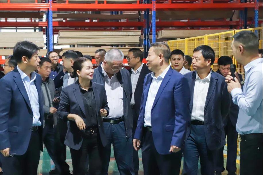 大足區(qū)常務(wù)副區(qū)長蘇一元 、副區(qū)長楊烈、區(qū)人大副主任駱華、區(qū)政協(xié)副主席張秀榮等各位領(lǐng)導(dǎo)先后參觀了奢匠家居板式車間、實木車間,充分了解奢匠產(chǎn)品構(gòu)架、生產(chǎn)管理體系以及安全生產(chǎn)情況。