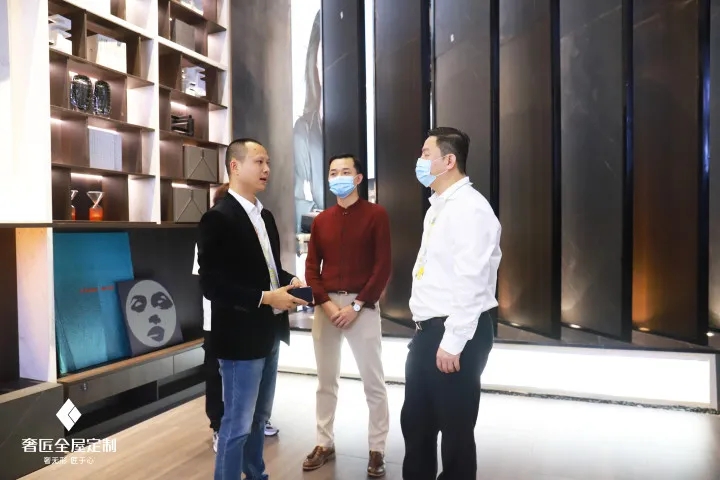 全國工商聯(lián)家具裝飾業(yè)商會執(zhí)行會長張傳喜、廣州博駿家居科技有限公司總經(jīng)理&廣東省定制家居協(xié)會秘書長曾勇對奢匠家居廣州定制展會進(jìn)行了現(xiàn)場指導(dǎo)。張會長與曾秘書長對奢匠的產(chǎn)品表達(dá)了高度的認(rèn)可,且一致認(rèn)為奢匠家居不管是在今年的定制展上,還是在以后的發(fā)展中都會大放異彩。