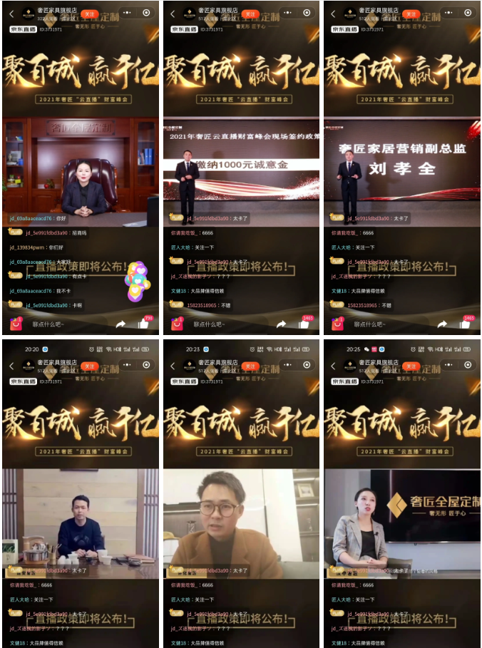 展會期間,奢匠全屋定制同步開啟了“聚百城 贏千億”定制展專場——“云直播”財富峰會。直播期間奢匠帶領(lǐng)觀眾參觀智造基地、解讀定制行業(yè)新趨勢、分析行業(yè)前景。同時通過直播方便大家“不出門,看奢匠”,讓線上觀眾更直觀地接觸奢匠品牌,了解奢匠產(chǎn)品。