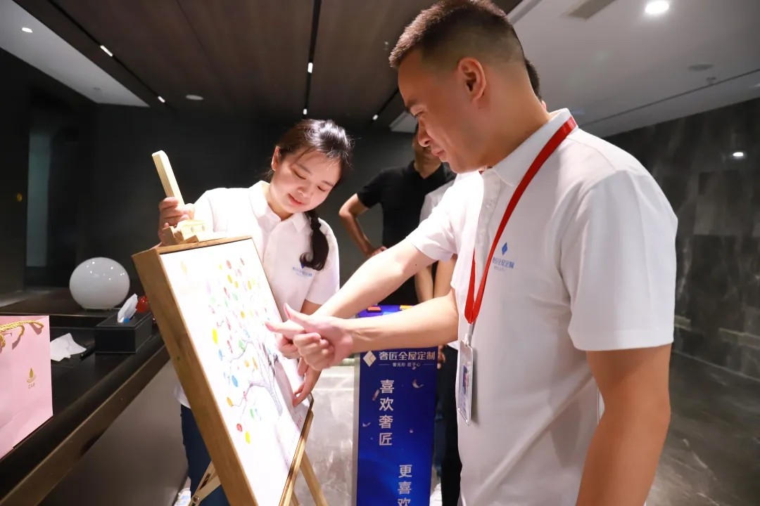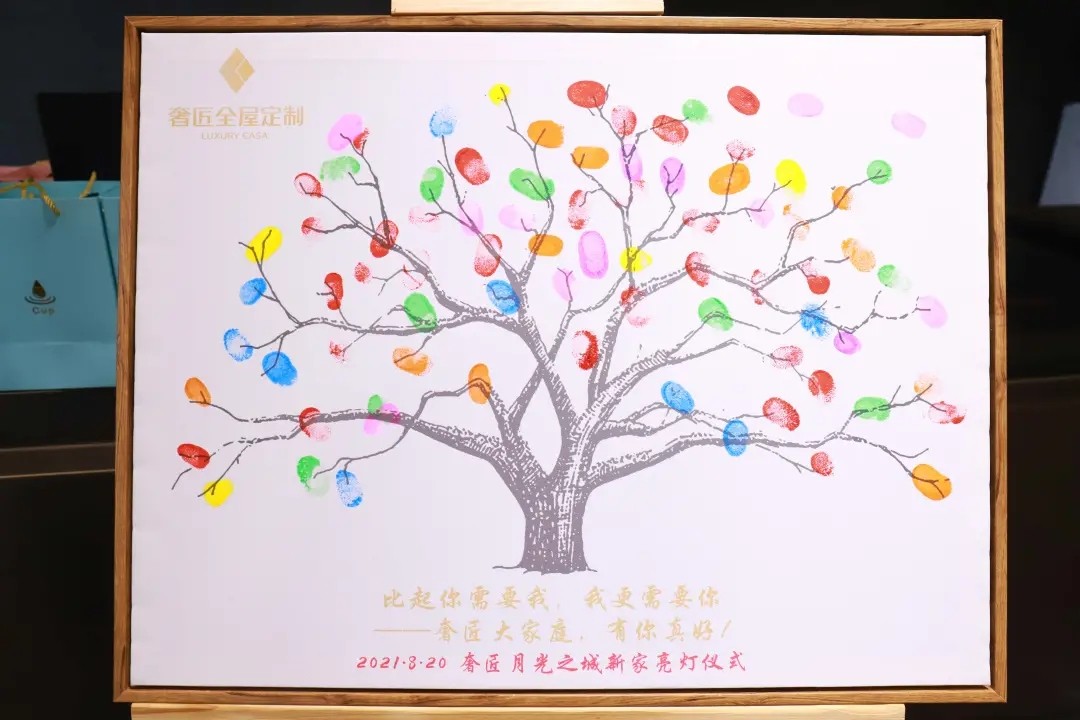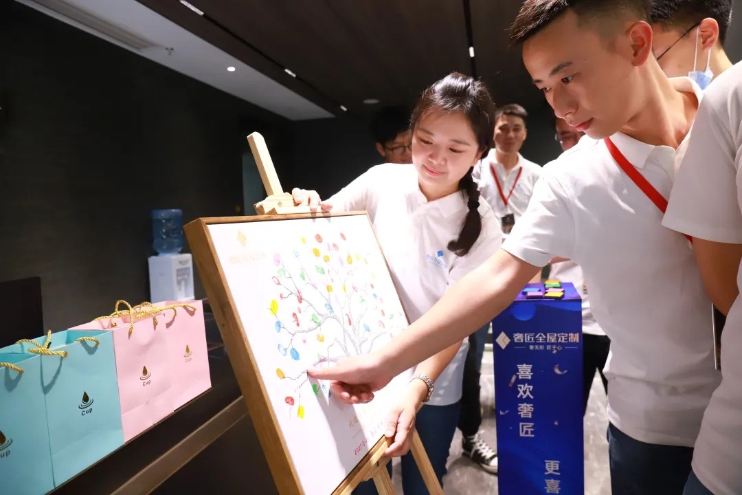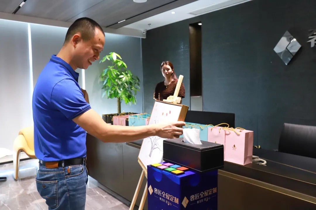為慶祝喬遷之喜,奢匠全屋定制喬遷儀式于8月20日上午在營(yíng)銷(xiāo)中心新址舉行。儀式開(kāi)啟前,每位家人都在簽到樹(shù)上捺下珍貴的指印,寓意奢匠在每一位家人的共同努力下,從幼苗茁壯成長(zhǎng)為今天的參天大樹(shù)。此外,王總還貼心地為大家準(zhǔn)備了精美伴手禮,小伙伴們的喜悅之情溢于言表。
