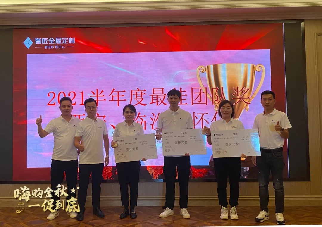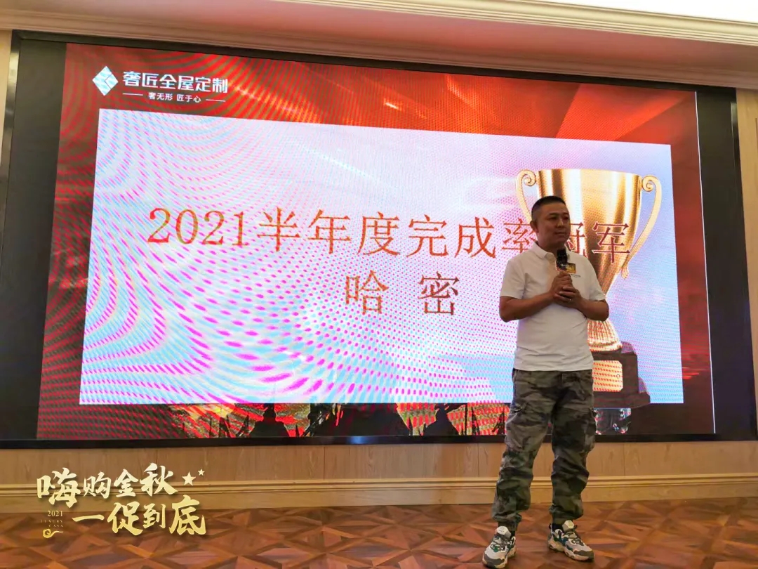 獲得業(yè)績(jī)回款完成率冠軍、業(yè)績(jī)回款最多亞軍兩項(xiàng)殊榮的哈密奢匠—吳總,首先向奢匠全體同仁表示感謝,更表示:哈密奢匠團(tuán)隊(duì)會(huì)抱著必勝的信心,打好國(guó)慶大促這關(guān)鍵的一戰(zhàn),再創(chuàng)新輝煌!