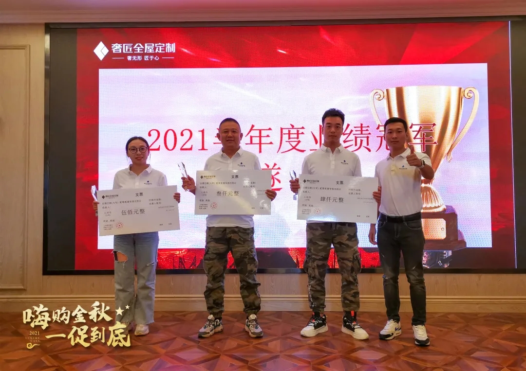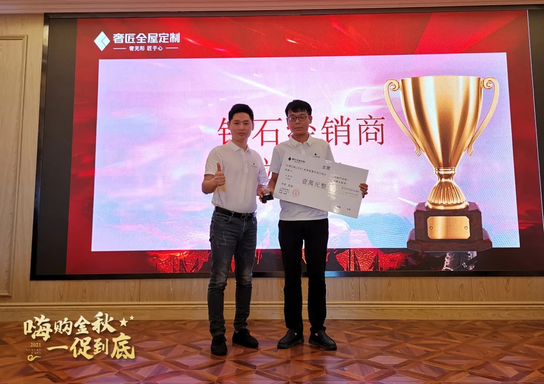 劉經(jīng)理分別為哈密、遂寧、漢中奢匠頒發(fā)業(yè)績(jī)冠軍獎(jiǎng)。