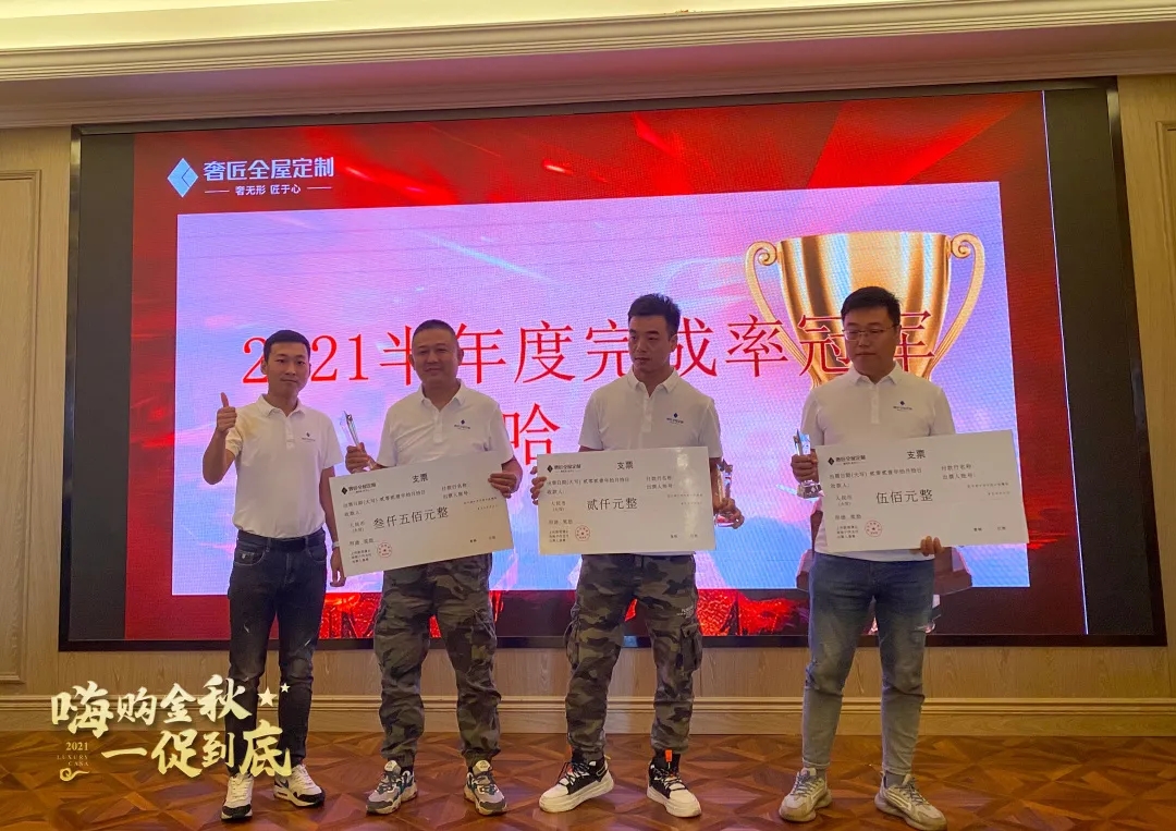 劉經(jīng)理分別為哈密奢匠、遂寧奢匠、晉城奢匠頒發(fā)了業(yè)績(jī)完成率獎(jiǎng)。