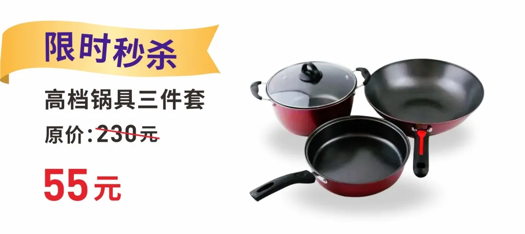 55元直播間限時秒殺價值230元高檔鍋具三件套