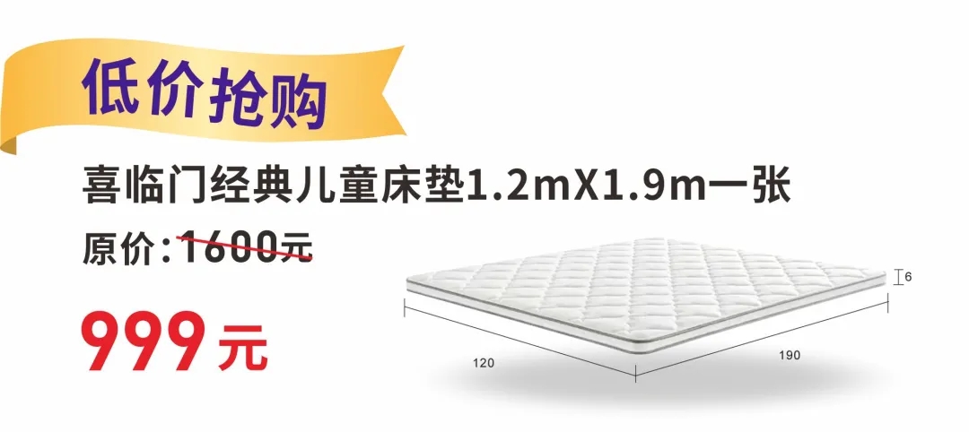 999元直播間低價搶購價值1600元喜臨門1.2米兒童床墊一張。