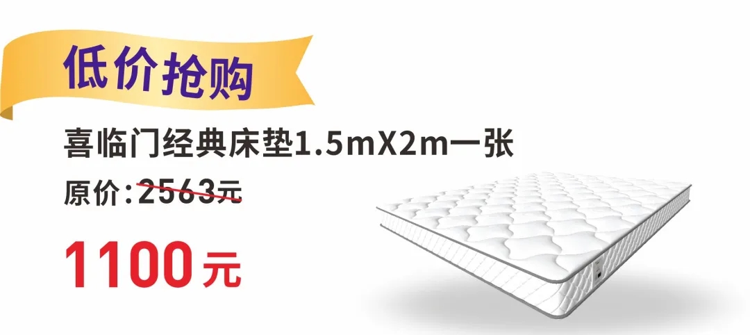 1100元直播間低價搶購價值2563元喜臨門1.5米床墊一張