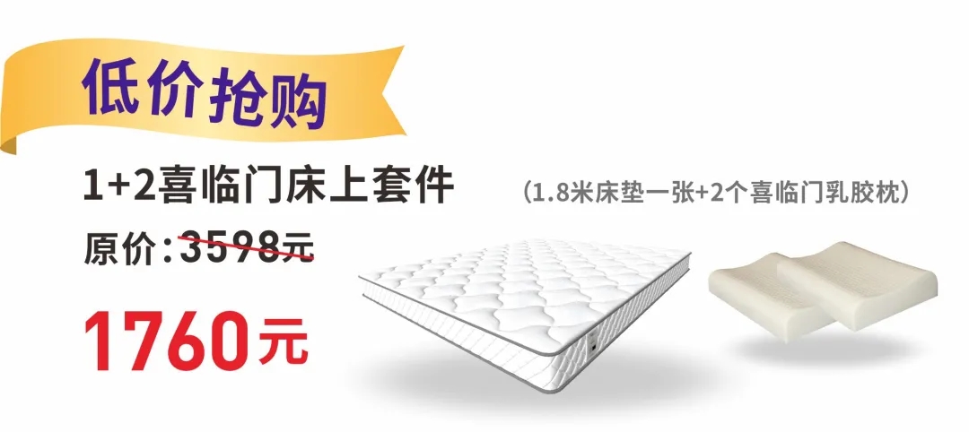 1760元直播間低價搶購1+2喜臨門床上套件(1.8米床墊一張+2個喜臨門乳膠枕)