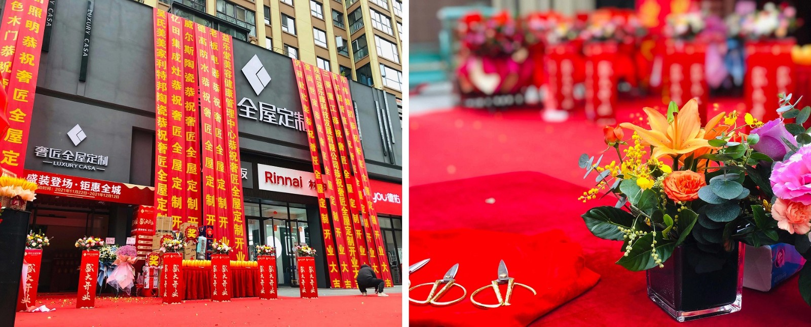 上午11:28 來自奢匠北方大區(qū)經(jīng)理—劉昊、西安奢匠家居經(jīng)銷商—楊總、漢中店奢匠家居總經(jīng)理—肖總、漢中店奢匠家居售后服務(wù)經(jīng)理—王總、漢中店奢匠家居銷售經(jīng)理—鄒總共同為奢匠漢中店進(jìn)行了隆重的剪彩儀式,禮炮伴隨著剪彩散發(fā)出五彩彩條,寓意著奢匠家居漢中店在未來紅紅火火,財(cái)源廣進(jìn)。