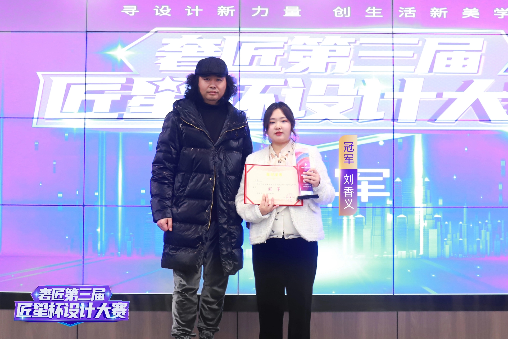 最終,來自奢匠營(yíng)銷中心設(shè)計(jì)支持部—劉香義,獲得此次設(shè)計(jì)大賽冠軍,來自奢匠工廠深化設(shè)計(jì)部—陳大慶獲得亞軍,來自奢匠萬州店—江濤獲得季軍。恭喜三位優(yōu)秀設(shè)計(jì)師奪得前三強(qiáng)!