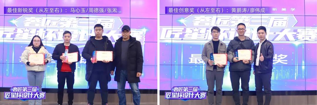 獲得本次設(shè)計(jì)大賽最佳新銳獎(jiǎng)的三位選手分別是:奢匠江津店—馬心玉、奢匠瀘州店—周德強(qiáng)、奢匠云陽店—張淞。獲得設(shè)計(jì)大賽最佳創(chuàng)意獎(jiǎng)的兩位選手分別是:奢匠西安店—黃鵬濤、奢匠遂寧店—廖偉成。再次,恭喜以上獲獎(jiǎng)?wù)?,期待你們更多更棒的設(shè)計(jì)作品哦。