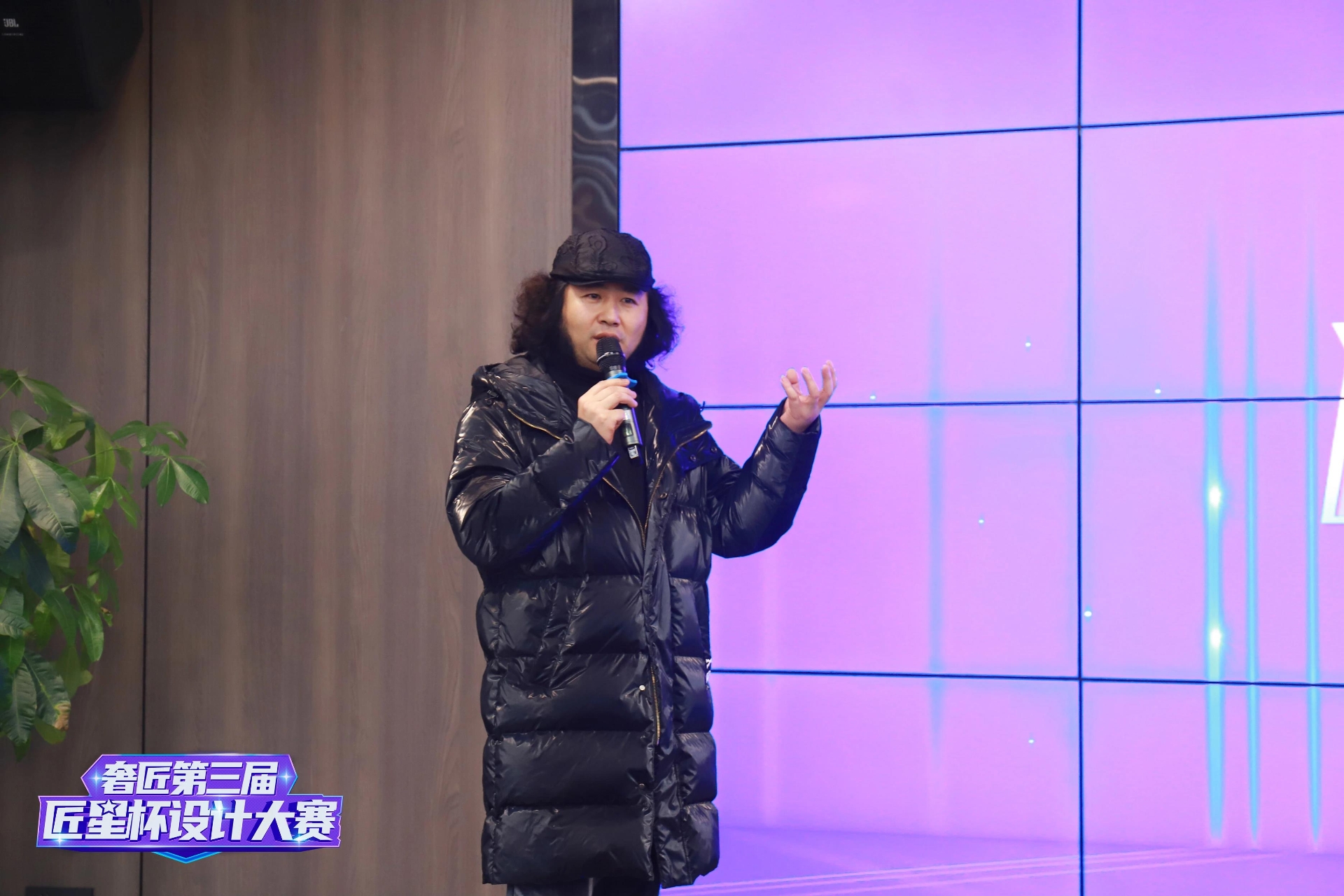 本次設(shè)計(jì)大賽,品牌首席研發(fā)設(shè)計(jì)顧問—劉逸飛先生也在現(xiàn)場(chǎng)全程觀看了每一位晉級(jí)選手的設(shè)計(jì)作品,并進(jìn)行了總結(jié)性的評(píng)析。他講到:舉辦“匠星杯”設(shè)計(jì)大賽是為眾多設(shè)計(jì)師提供一個(gè)展示的舞臺(tái),同時(shí)也是通過這個(gè)平臺(tái)挖掘更多設(shè)計(jì)人才。今天他有幸見識(shí)到奢匠對(duì)設(shè)計(jì)師的重視與培養(yǎng),也看到了奢匠設(shè)計(jì)師極具多元化的設(shè)計(jì)能力,突破性的創(chuàng)新意識(shí)。最后,劉老師現(xiàn)場(chǎng)對(duì)本次設(shè)計(jì)大賽取得圓滿成功表達(dá)祝賀!
