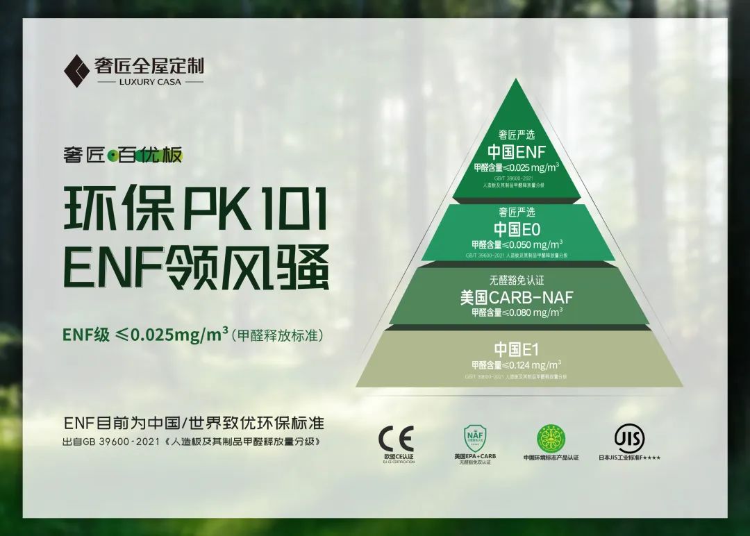 該套餐使用板材為ENF級(jí)百優(yōu)板。ENF級(jí)的環(huán)保標(biāo)準(zhǔn)位居世界領(lǐng)先水平,代表著我國(guó)乃至全球人造板工業(yè)環(huán)保新高度。