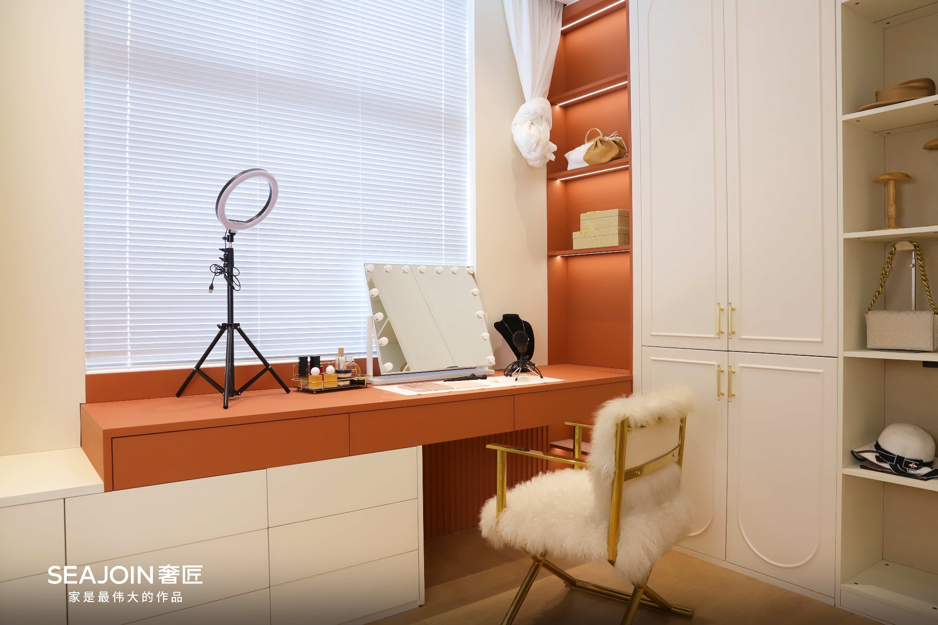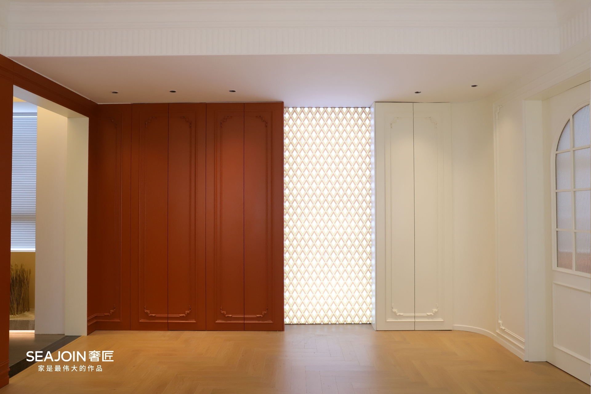 在混油工藝極致的色彩把控力下,奶油色系空間內(nèi)的這抹鮮艷明媚色彩,跳躍出一抹驚艷人眼眸的活力。與法式線條相融,增加空間層次感。