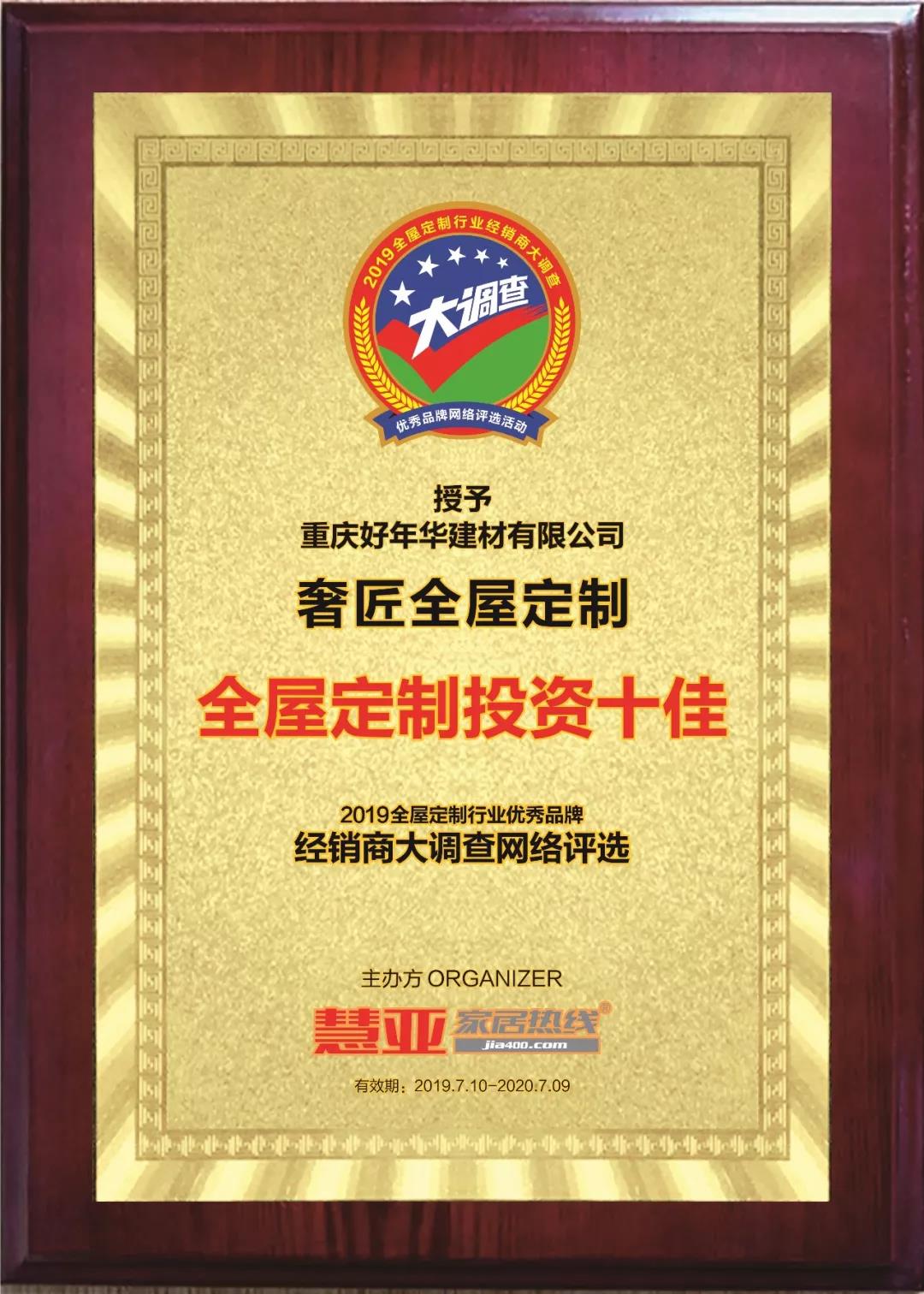 奢匠以其追求卓越的產(chǎn)品質(zhì)量、遵循原創(chuàng)的非凡設計、特有的企業(yè)文化以及強大的品牌實力榮獲“全屋定制投資十佳”品牌。