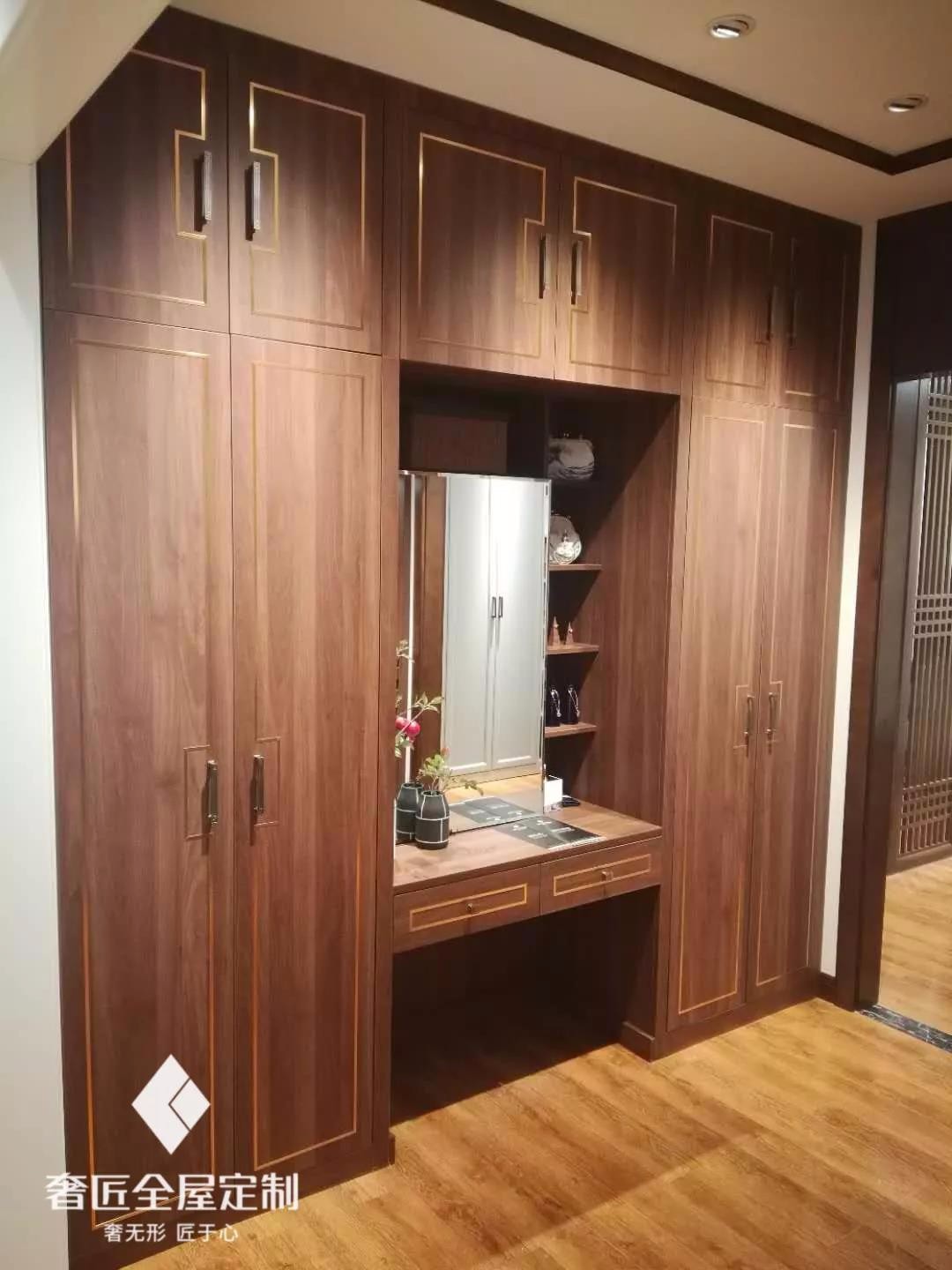 想要裝出完美的新中式,柜體設(shè)計也是很重要的一環(huán),一個古色古香的柜子絕對是營造氛圍的利器。新中式柜子的設(shè)計要點主要體現(xiàn)在板材、柜門紋飾、拉手等方面。設(shè)計上多采用對稱式的布局方式,以總體的布局,來突顯空間的高雅格調(diào),造型的樸素優(yōu)美,色彩的濃厚成熟。
