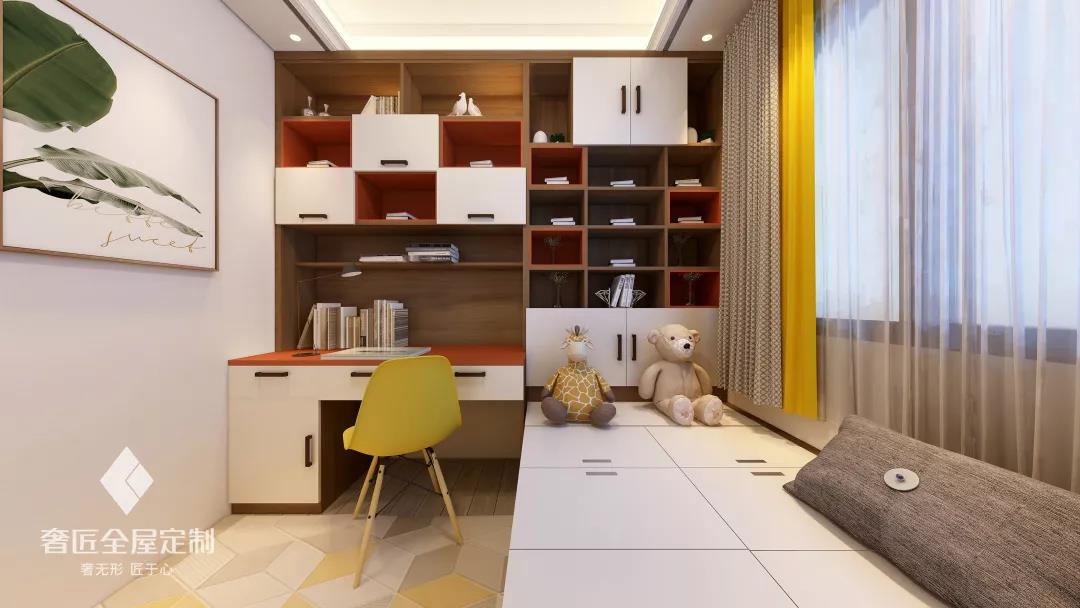 在臥室空間較大的情況下,可以選擇用隔斷將臥室內多隔出一個書房來。這樣整個臥室就不僅只是睡覺休息的地方,還成為了可以安靜學習的地方。而隔斷同時也起到了電視背景墻的作用,同時滿足休息和學習兩個空間的需求,互不打擾,獨立靜謐,使用起來也非常的方便。