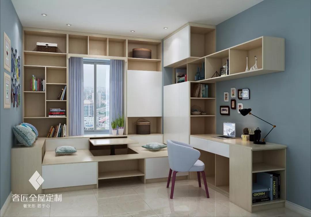 一間面積不大的房間,可以考慮榻榻米+小茶桌+書柜的組合設計,整面墻的收納柜和一體化書桌,能夠?qū)M皆收藏,讓空間充滿寧靜的氣息。榻榻米的升降小茶桌,可在閑暇之余,沏一壺茶,慢慢品茗,在滿室茶香中,享受一段愜意時光!