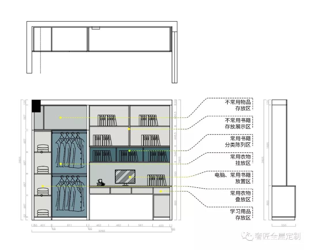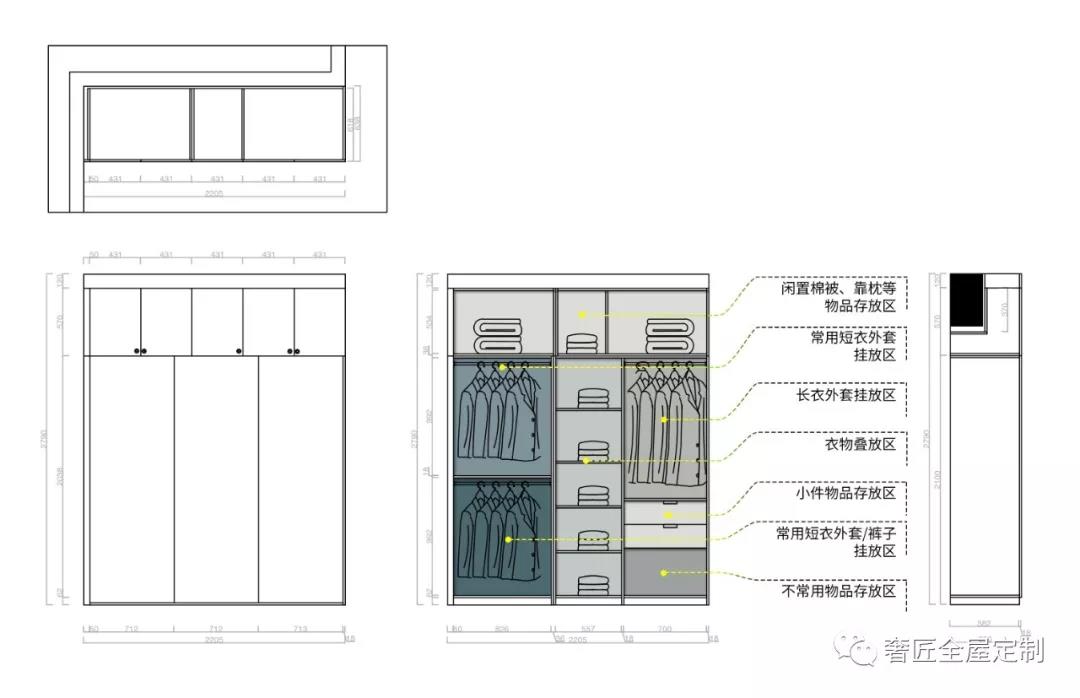 ·衣柜搭配頂柜,向上延伸儲(chǔ)物空間,存放閑置物品。