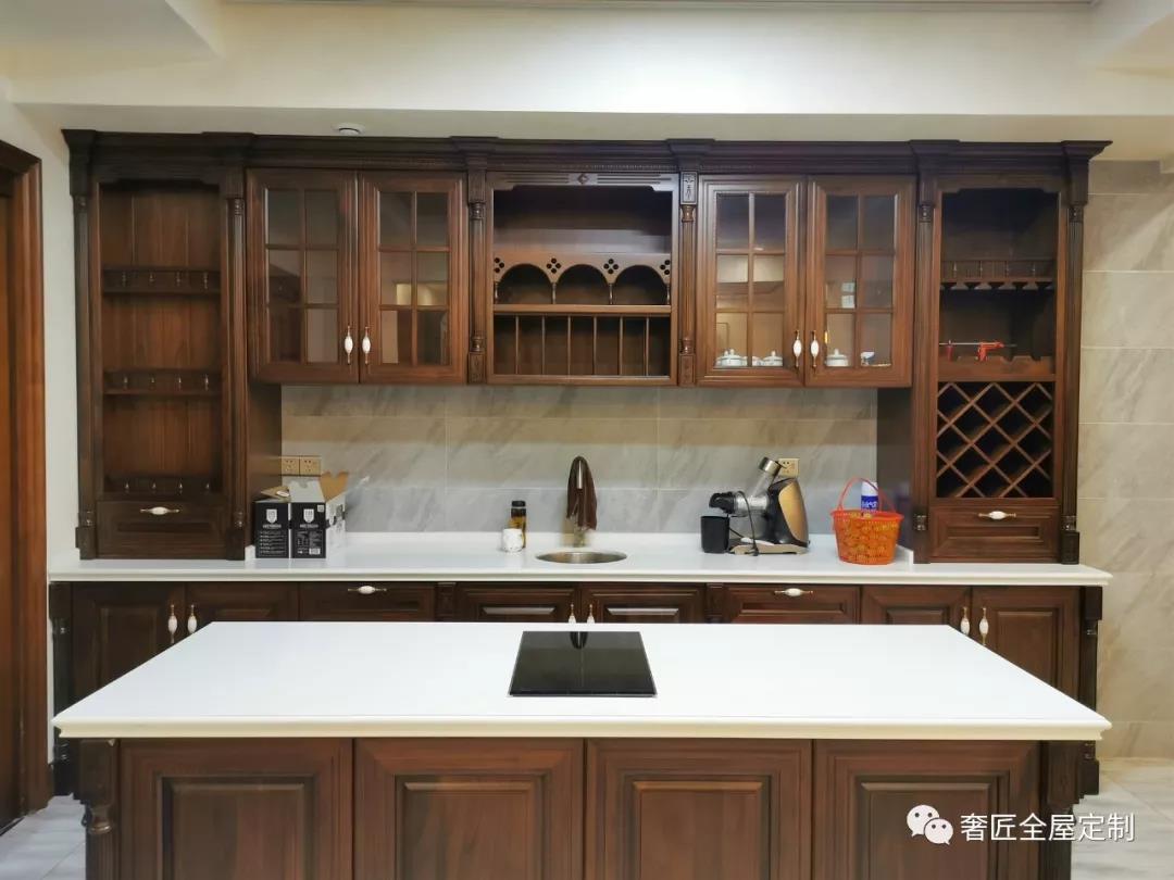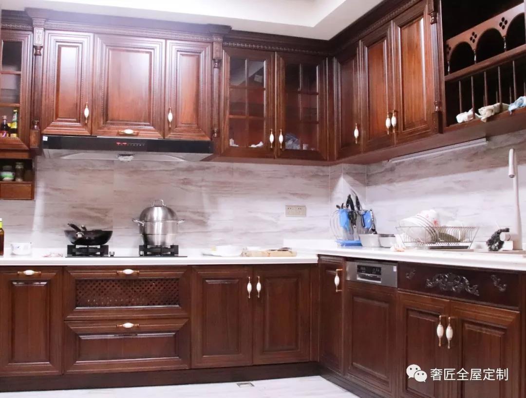 廚房的廚柜材質(zhì)運用實木,搭配上廚房極具現(xiàn)代化的器具用品,形成從洗菜、切菜、炒菜的流暢動線。棕色的廚柜,色彩上給人溫馨的感覺,大理石臺面與廚柜巧妙的融合及兼顧使用的設(shè)計,讓廚房在使用過程中更加舒適便利。